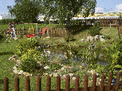 In Eigeninitiative und mit eigenen Mitteln errichteten wir zuvor Biergarten und Spielplatz und gestalteten die gesamte Fläche vor dem Gebäude.